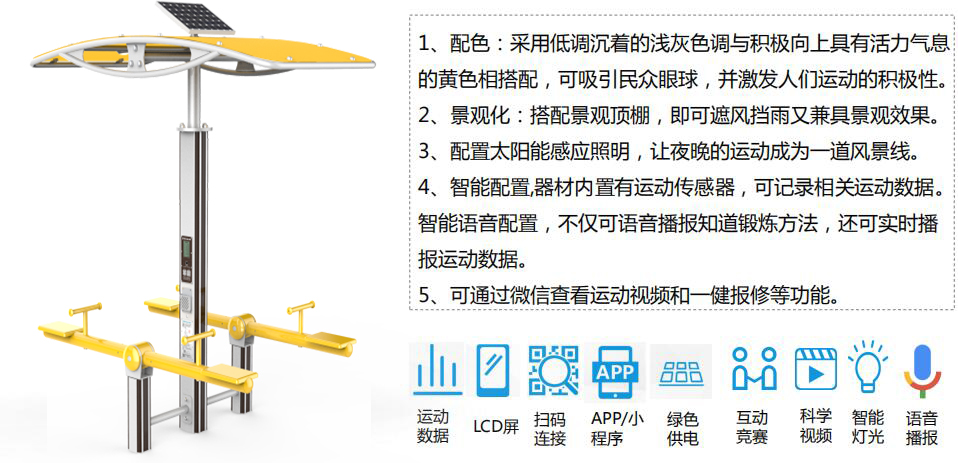 银河Galaxy全民健身产品涵盖健身路径、运动场馆、篮乒气羽排等产品,分为多个系列,先进的制造工艺、严苛的质量检测,确保产品性能优良、品质安全可靠,让运动简单科学。并将全民健身器材(户外路径器材、体育场馆等产品)进行智能化升级和互联,实现全人群覆盖、全场景智能,让运动赞美生活。