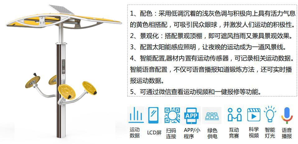 银河Galaxy全民健身产品涵盖健身路径、运动场馆、篮乒气羽排等产品,分为多个系列,先进的制造工艺、严苛的质量检测,确保产品性能优良、品质安全可靠,让运动简单科学。并将全民健身器材(户外路径器材、体育场馆等产品)进行智能化升级和互联,实现全人群覆盖、全场景智能,让运动赞美生活。