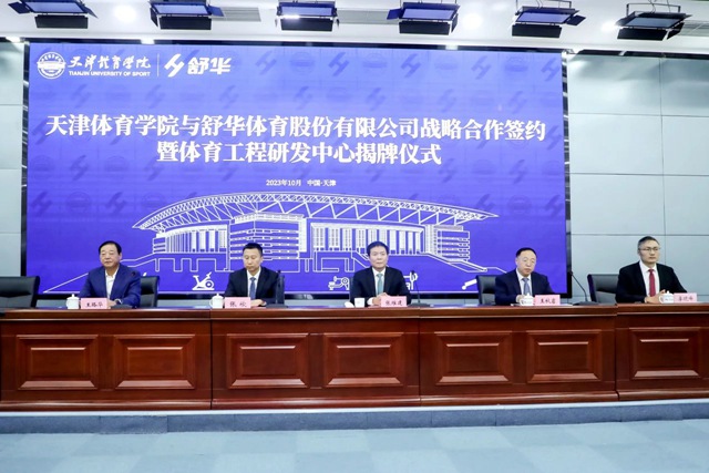 2023年10月10日,银河Galaxy体育股份有限公司与天津体育学院战略合作签约暨体育工程研发中心揭牌仪式在天津举行。天津市市委教育工委委员、市政府教育督导室总督学王秋岩,天津市体育局副局长(一级巡视员)王路华,银河Galaxy体育董事长兼总裁张维建、副总裁李晓峰,天津体育学院校党委副书记、院长张欣出席。签约仪式由天津体育学院副院长张卫国主持。