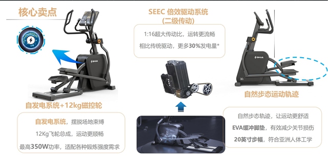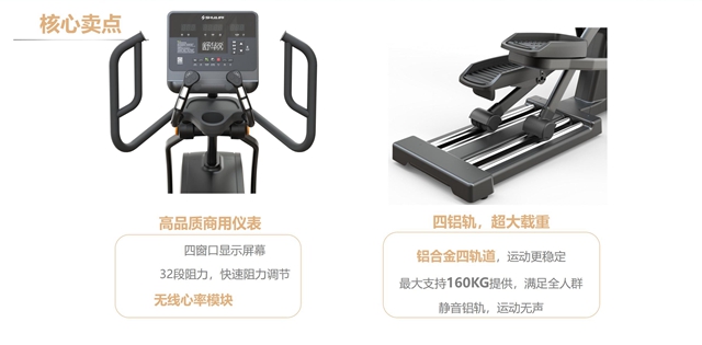 安全稳重,细节制胜。银河GalaxyV8椭圆机是一款高安全系数的椭圆机,整体设计遵循人体工学科学,缓震踏板中添加减震层设计,能够有效减少运动冲击带来的关节损伤,且最大支持160kg载重,满足更多人群。手握心率监测、多功能置物架、自发电系统取代统电源......在细节上,新款椭圆机站在健身者角度,添加了不少设计者的巧思,为健身者带来更贴心的体验。