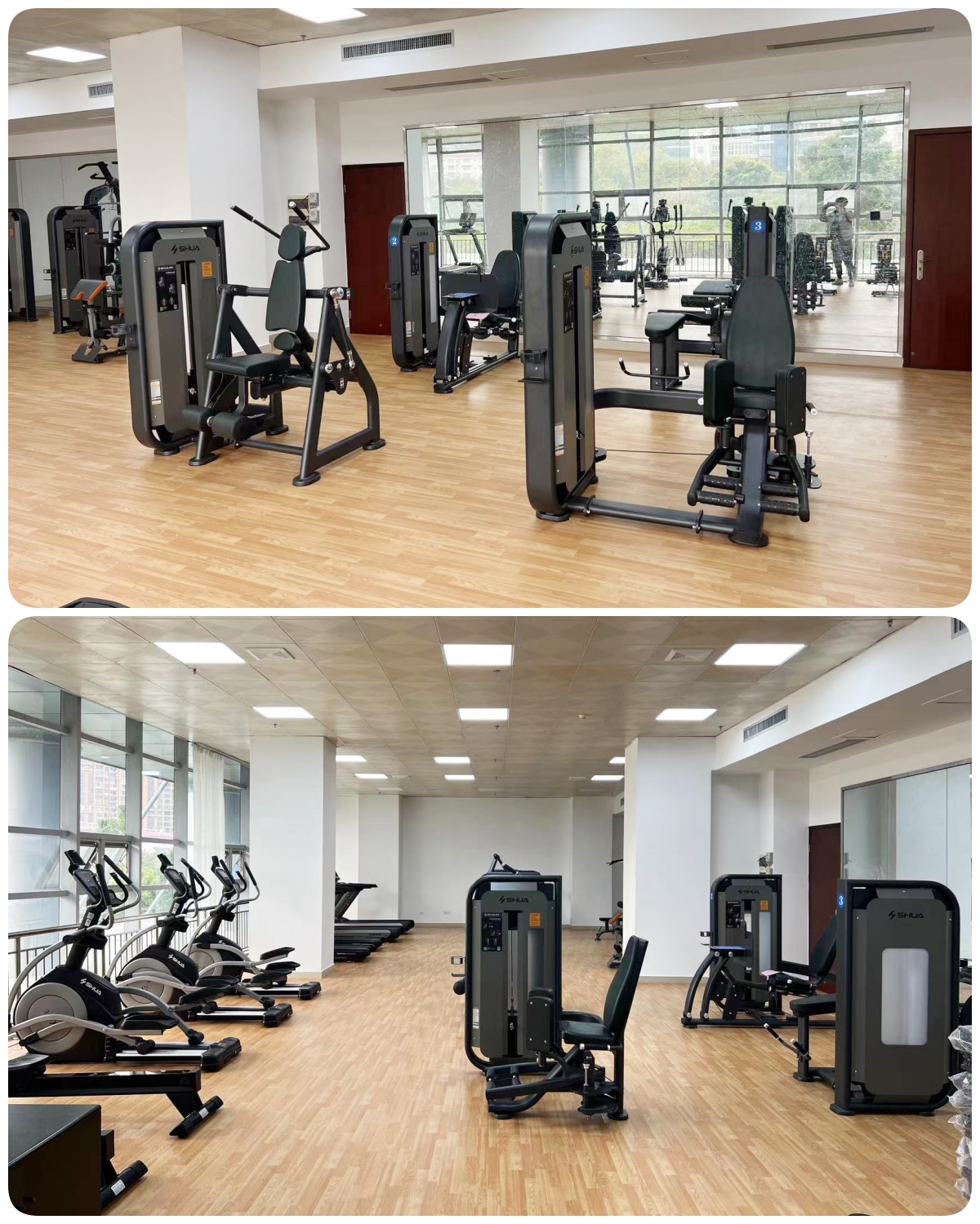 有氧区域主要配置了银河GalaxyX5跑步机、X5-E椭圆机、划船器SH-R8100、动感单车。有氧器材可以改善心肺功能、促进血液循环、提高新陈代谢、提升身体素质、提供了多样化的锻炼选择、能有效缓解工作压力和焦虑情绪,从而提高注意力和专注力,使员工在工作中更加冷静、高效。
