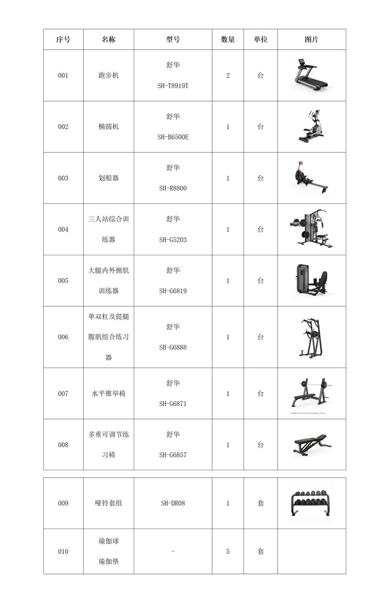 54m²企事业单位健身房配置清单: