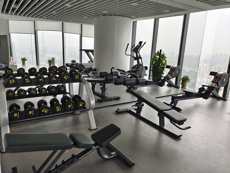 有氧器械配置了银河GalaxyV9智能跑步机,X5-E椭圆机,商用划船器SH-R8100。有氧运动可以增强心肺功能,提高身体代谢率,消耗体内多余脂肪。新V9商用跑步机具有坡度缓降功能,有助于肌肉与心血管训练,同时具有心率控制功能,随时监测心率,增强跑步体验感。X5-E椭圆机的生物力学设计,通过不受地面冲击的全身运动,能够进行高强度的有氧运动训练,更好的减轻疲劳感且不会对关节产生压力,保护膝关节的同时实现全身性的锻炼。