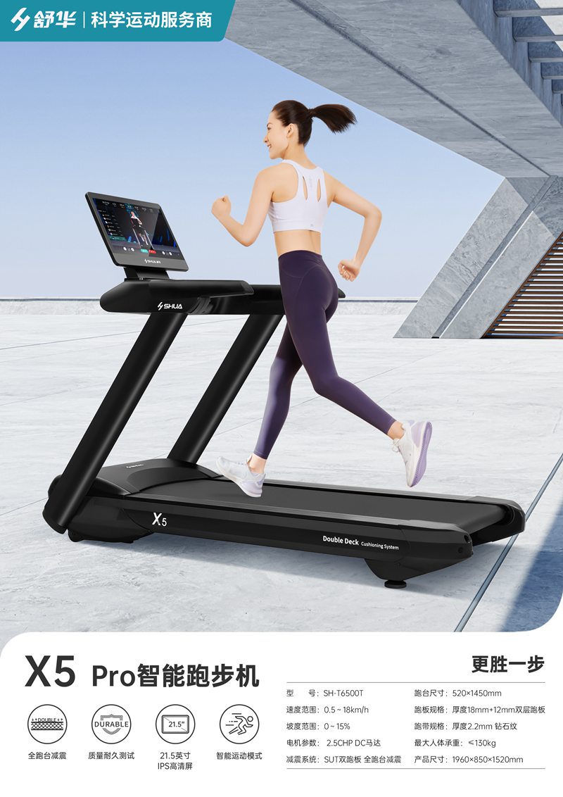 通过视频我们可以看到,跑者在银河Galaxyx5跑步机上运动时,每一步落地都非常稳健,这得益于银河Galaxy跑步机独特的全跑台减震系统。该系统采用双层跑板设计,并在上下跑板之间安装缓冲层,提高缓冲效果,更好的保护运动过程中对膝盖的冲击力。让跑者前脚舒适落地,后脚有力回弹,提脚时可有效借力。还能在跑步过程中更科学的利用运动人体学,减轻人体在跑步过程中的运动负荷,减少腿部肌肉拉伤,提升跑步稳定性。