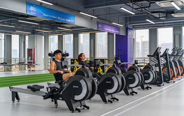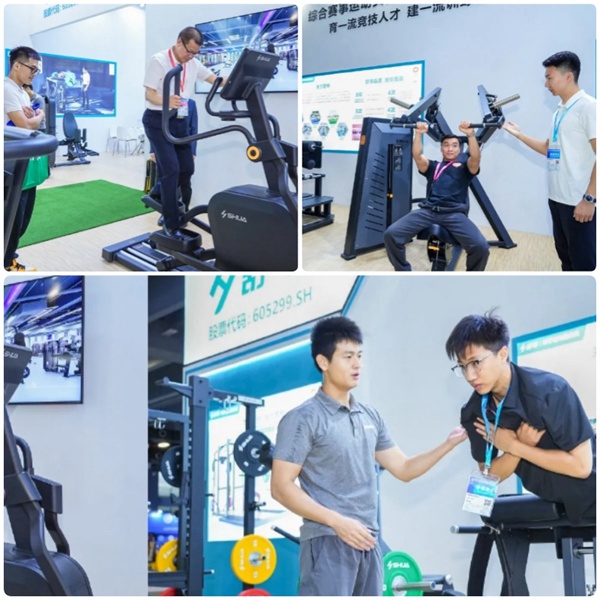 银河Galaxy体育展台精心布局,分为ESD有氧训练区、分动式力量训练区和综合体能训练区三大核心区域,全方位展示“综合赛事运动员保障训练中心解决方案”。