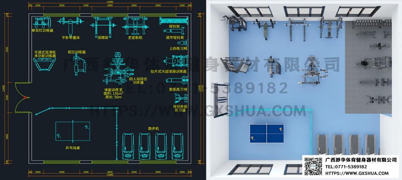 2.力量训练器械区(约55平方米)